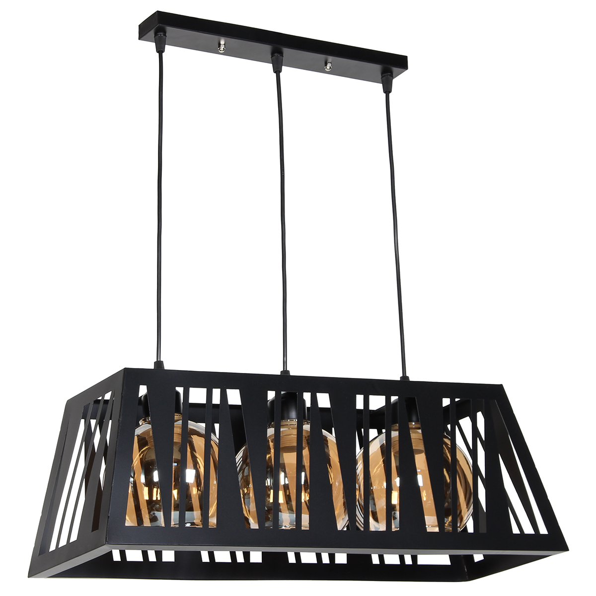 Φωτιστικό μεταλλικό κρεμαστό 3 Χ Ε27 60Χ20Χ20 εκ. Μαύρο με γυαλιά