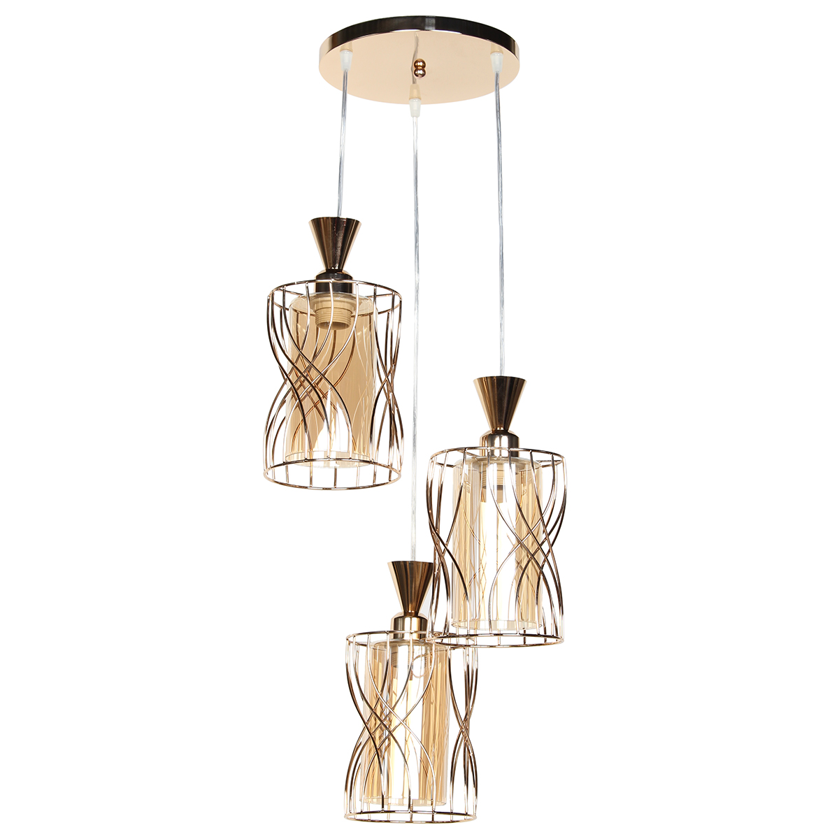 Φωτιστικό μεταλλικό κρεμαστό άνισο 3 Χ Ε27 Φ23 εκ. Χρυσό με γυαλιά. Διάσταση Σώματος: Φ15Χ28 εκ. Διάσταση Βάσης οροφής: Φ23 εκ.