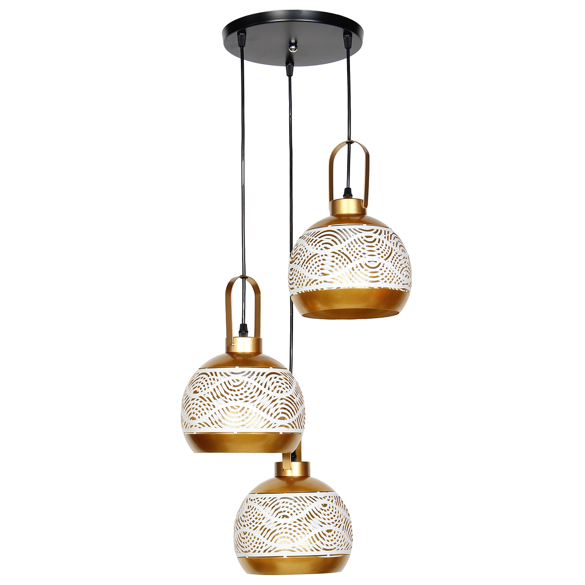 Φωτιστικό μεταλλικό κρεμαστό άνισο 3 Χ Ε27 Φ23 εκ. Λευκό – Χρυσό - KESKOR 526818