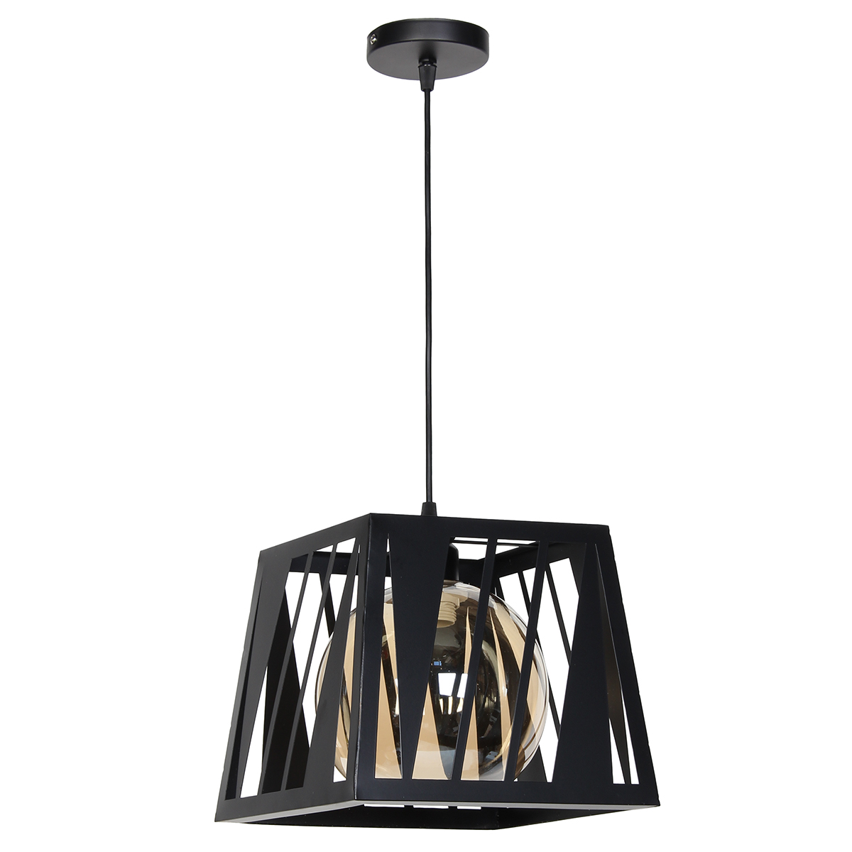 Φωτιστικό μεταλλικό κρεμαστό μονόφωτο Ε27 25Χ25Χ21-90 εκ. Μαύρο με γυαλί