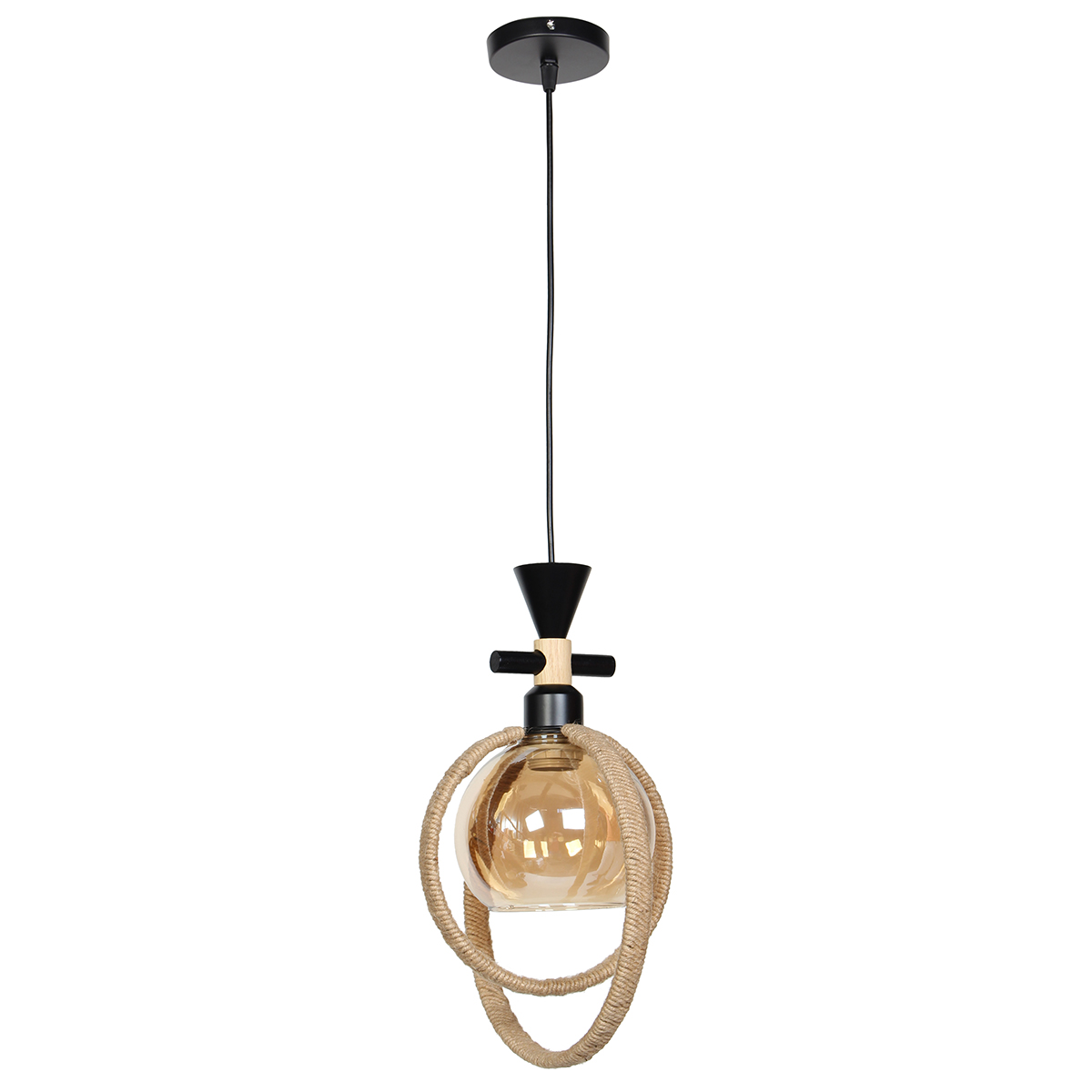 Φωτιστικό μεταλλικό κρεμαστό μονόφωτο Ε27 26Χ20Χ38 εκ. Μαύρο με σχοινί και γυαλί