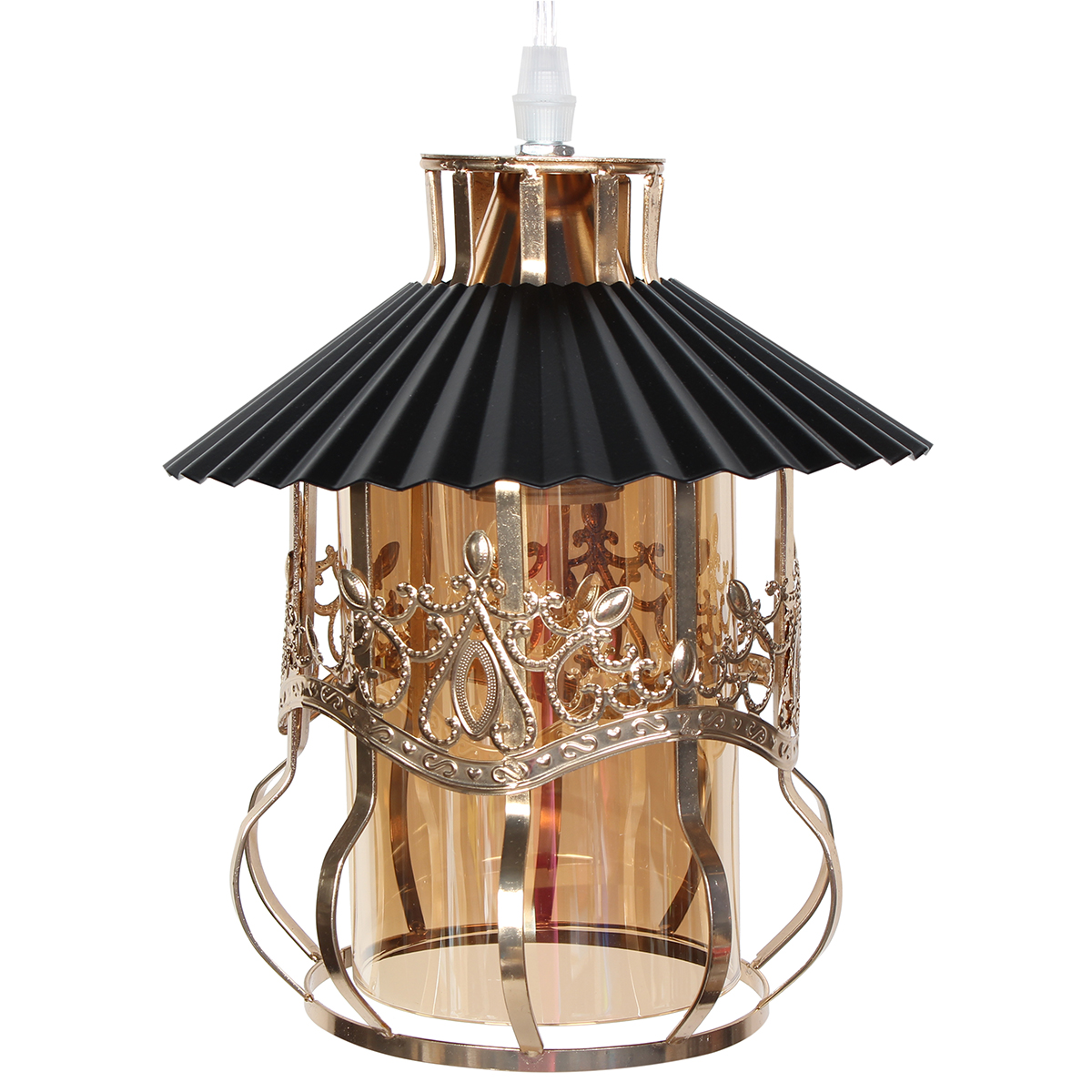 Φωτιστικό μεταλλικό κρεμαστό μονόφωτο Ε27 Φ19Χ28 εκ. Μαύρο-Χρυσό με γυαλί