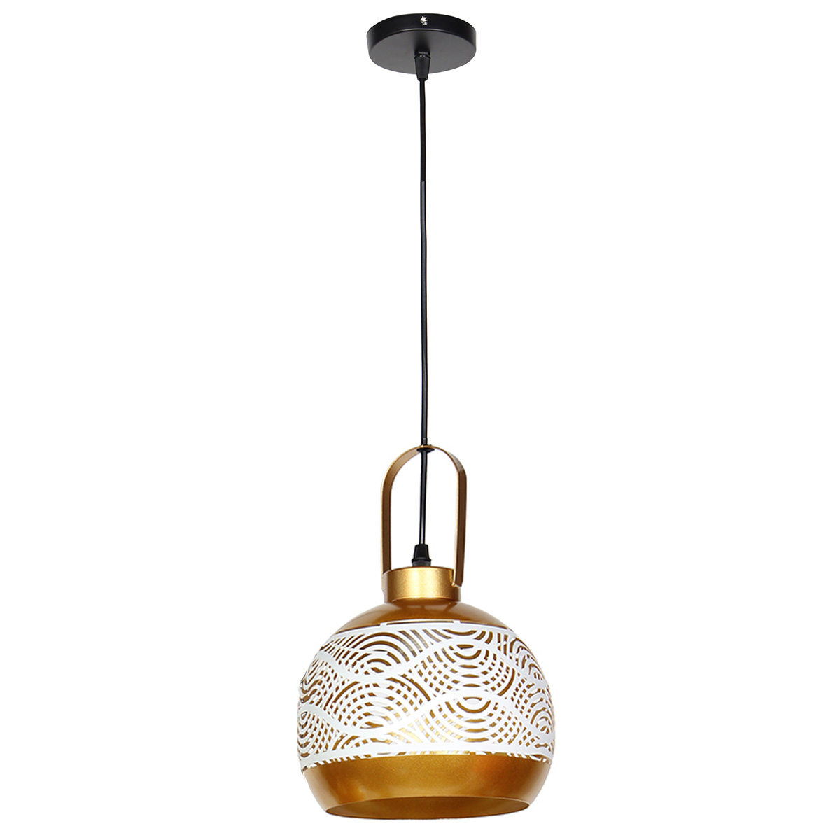 Φωτιστικό μεταλλικό κρεμαστό μονόφωτο Ε27 Φ20Χ30 εκ. Λευκό – Χρυσό