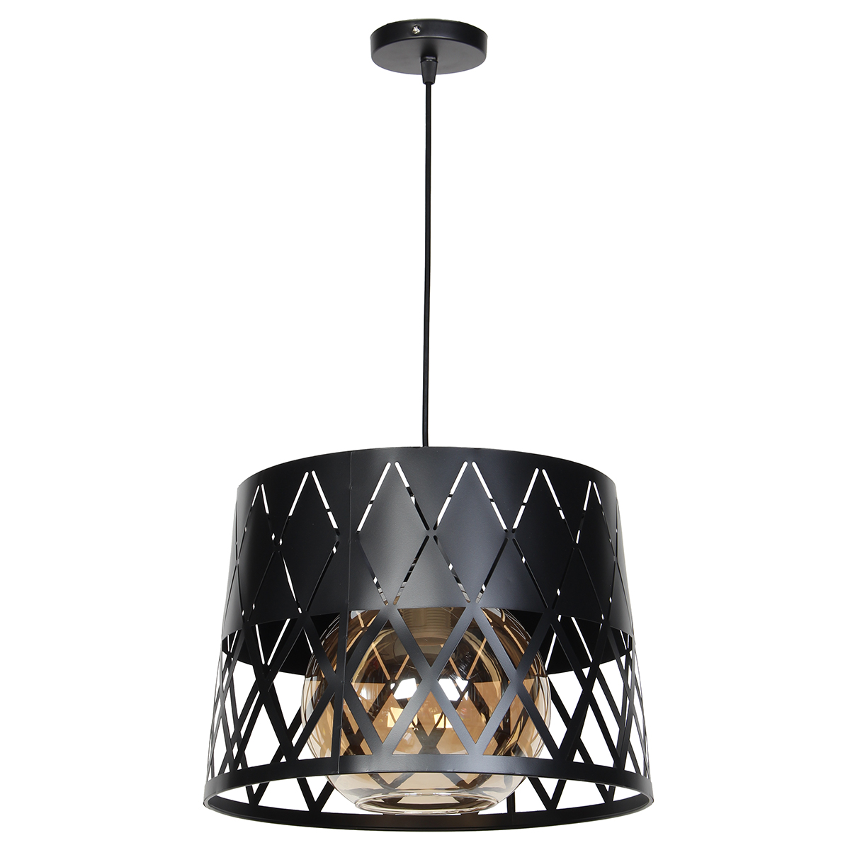 Φωτιστικό μεταλλικό κρεμαστό μονόφωτο Ε27 Φ35Χ25 εκ. Μαύρο με γυαλί - KESKOR 526814