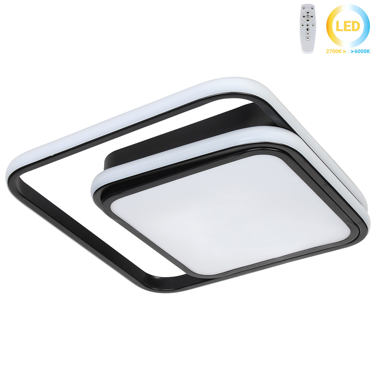 Φωτιστικό οροφής LED 70W 34Χ34Χ6,5 εκ. μαύρο με controller Διαθέτει controller Δυνατότητα ρύθμισης χρώματος φωτισμού. (θερμό, φυσικό, ψυχρό) Διαθέτει Dimmer για ρύθμιση έντασης φωτισμού