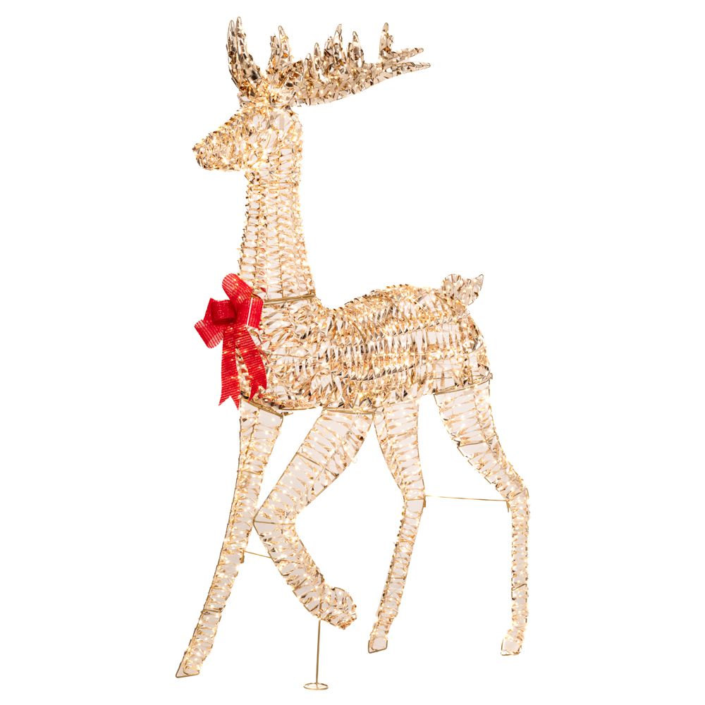 Φωτιζόμενο χρυσό ελάφι διαστάσεων 90Χ27Χ180εκ. Διαθέτει 1440 led λαμπάκια σε ζεστό χρώμα.