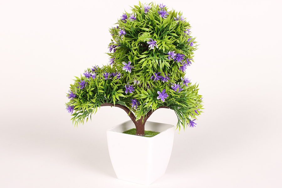 Γλαστράκι πλαστικό Μπονζάι 20Χ12Χ26 εκ. με άνθη χρ. μωβ. Η διάσταση αναφέρεται στα φύλλα και όχι στην βάση.