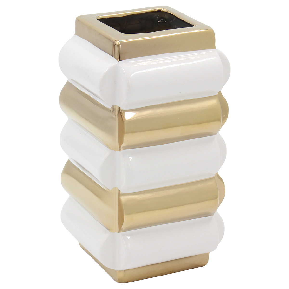 Ανθοδοχείο - Διακοσμητικό κεραμικό 12Χ12Χ22 εκ. Λευκό Χρυσό - KESKOR 63058
