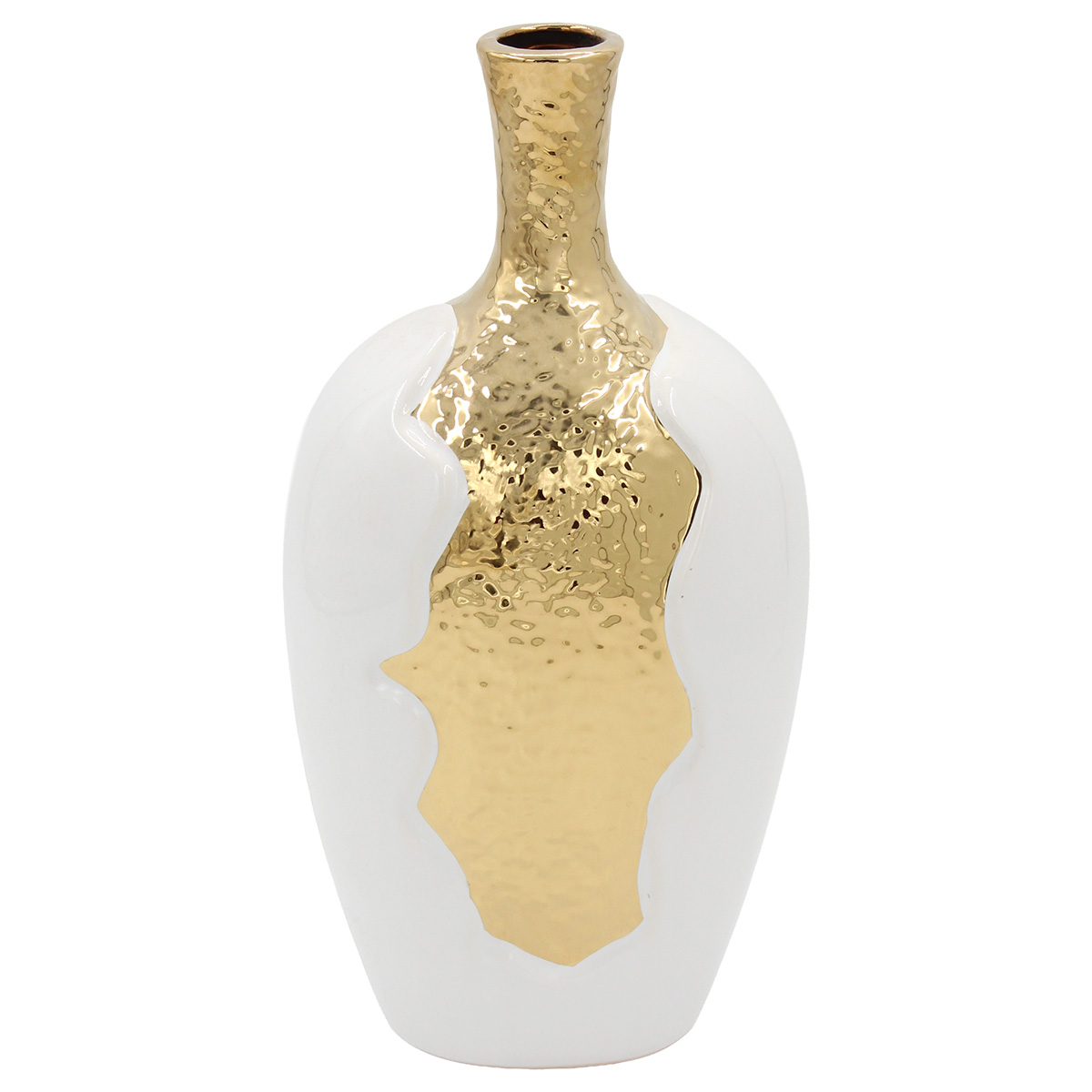Ανθοδοχείο - Διακοσμητικό κεραμικό 15Χ12Χ30 εκ. Λευκό Χρυσό - KESKOR 80801