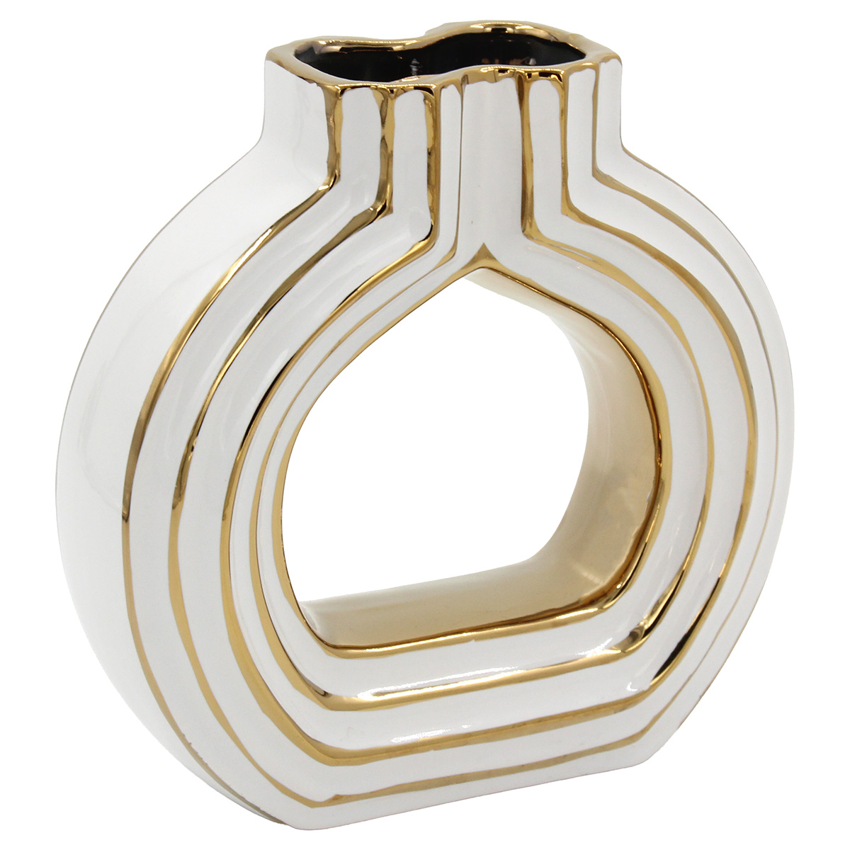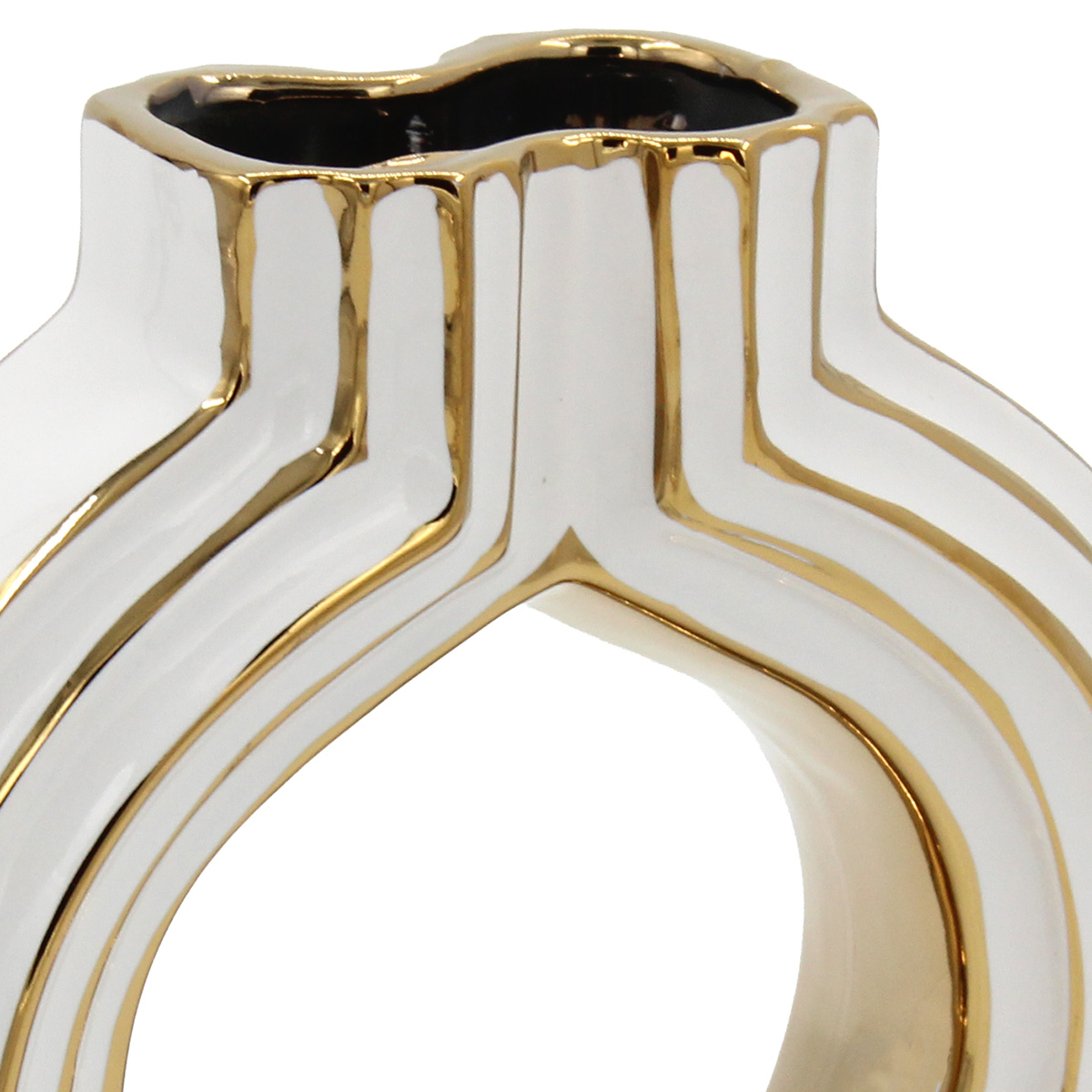 Ανθοδοχείο - Διακοσμητικό κεραμικό 20Χ7Χ19 εκ. Λευκό Χρυσό Αυτό το ανθοδοχείο - διακοσμητικό κεραμικό 20Χ7Χ19 εκ. σε λευκό και χρυσό αποτελεί ιδανική επιλογή για επιτραπέζια διακόσμηση.