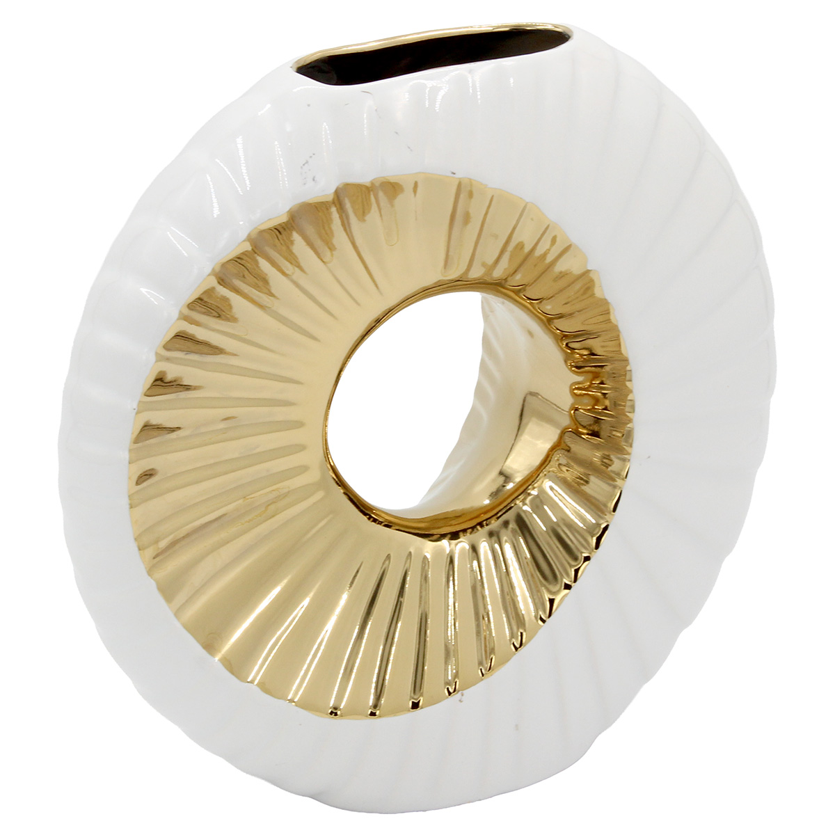 Ανθοδοχείο - Διακοσμητικό κεραμικό 21Χ7,5Χ21 εκ. Λευκό Χρυσό Αυτό το διακοσμητικό κεραμικό ανθοδοχείο συνδυάζει κομψότητα και μοντέρνα αισθητική. Ιδανικό για κονσόλες ή ράφια. Ο λευκός και χρυσός χρωματικός συνδυασμός προσθέτει λάμψη στον χώρο.