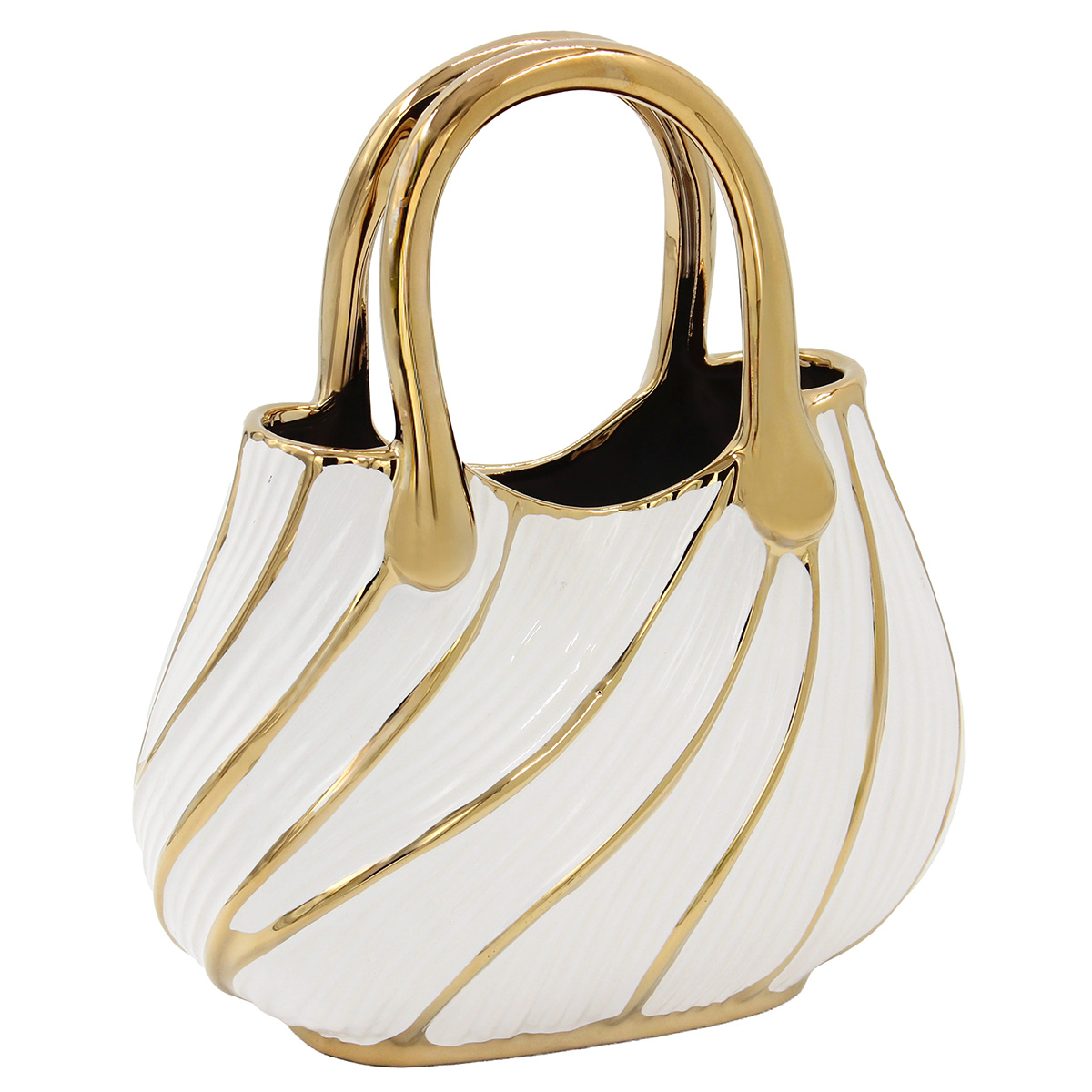 Ανθοδοχείο - Διακοσμητικό κεραμικό 24Χ10Χ25 εκ. Τσάντα Λευκό Χρυσό Αυτό το κεραμικό ανθοδοχείο τσάντα λευκό-χρυσό προσδίδει μοντέρνα και κομψή πινελιά. Μπορεί να φιλοξενήσει λουλούδια ή να σταθεί διακοσμητικά.