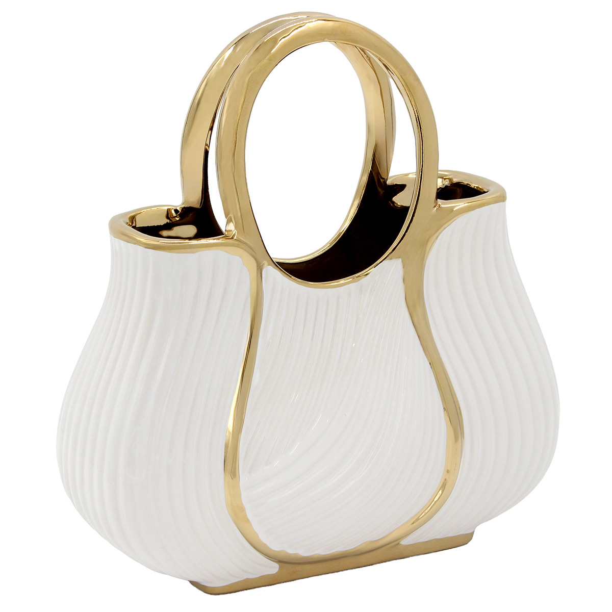 Ανθοδοχείο - Διακοσμητικό κεραμικό 24Χ10Χ25 εκ. Τσάντα Λευκό Χρυσό - KESKOR 63049