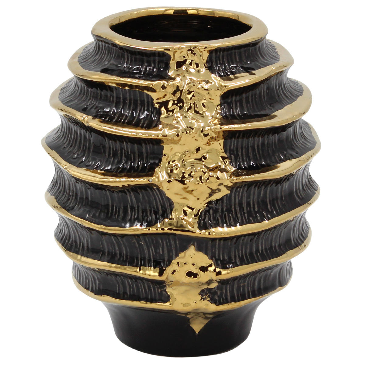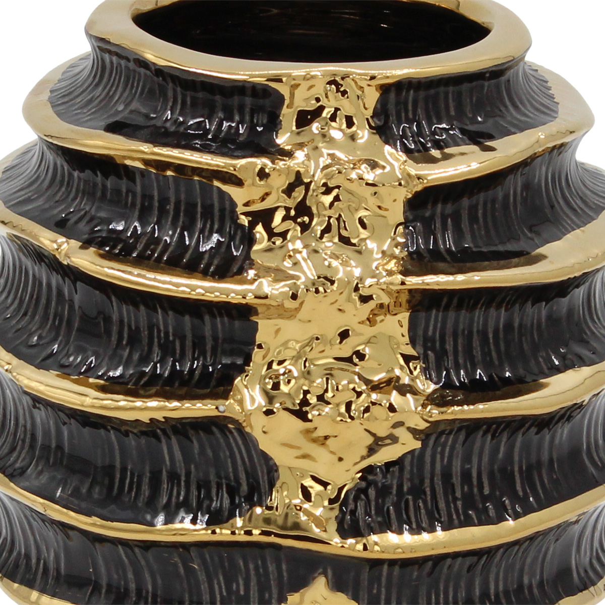 Ανθοδοχείο - Διακοσμητικό κεραμικό Φ13Χ15 εκ. Μαύρο Χρυσό - KESKOR 80816