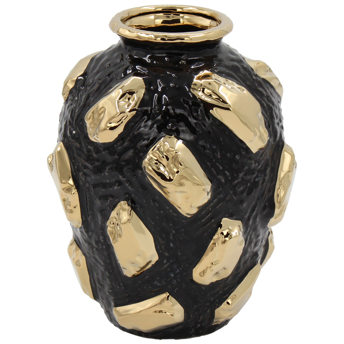 Ανθοδοχείο - Διακοσμητικό κεραμικό Φ16Χ19 εκ. Μαύρο Χρυσό - KESKOR 80820