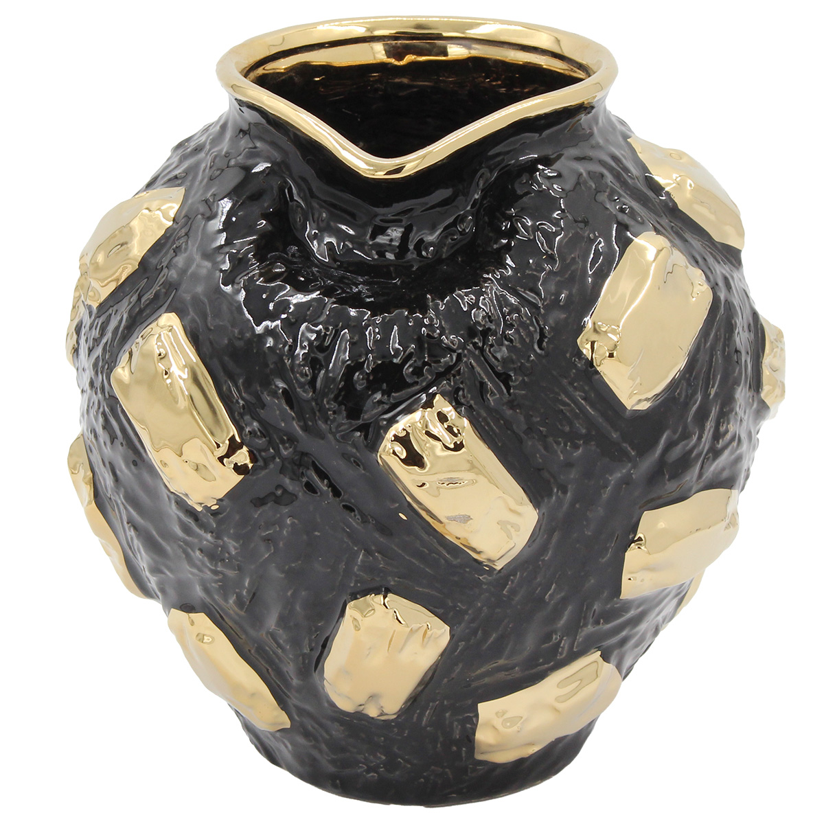 Ανθοδοχείο - Διακοσμητικό κεραμικό Φ20Χ19 εκ. Μαύρο Χρυσό - KESKOR 80821