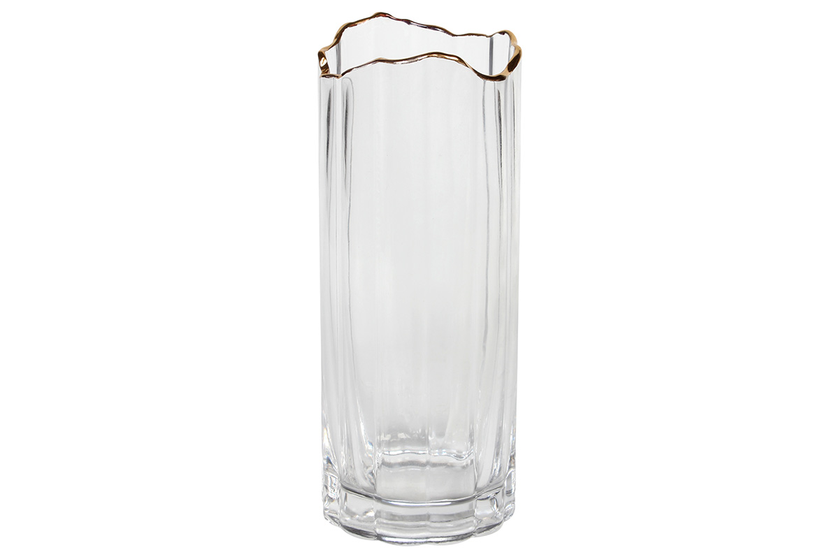 Ανθοδοχείο γυάλινο Φ10Χ25 εκ. διάφανο με χρυσές λεπτομέρειες