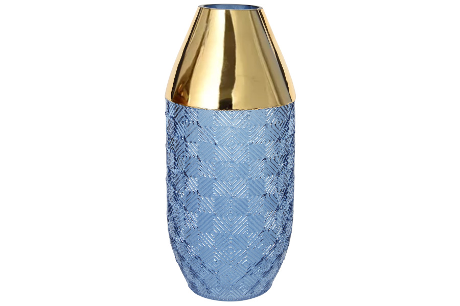 Ανθοδοχείο γυάλινο Φ15Χ36 εκ. μπλε χρυσό - KESKOR 06360