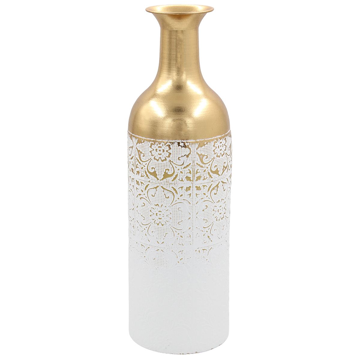 Ανθοδοχείο μεταλλικό Φ16Χ53 εκ. Λευκό Χρυσό Αυτό το μεταλλικό ανθοδοχείο Φ16Χ53 εκ. σε λευκό-χρυσό είναι εξαιρετική επιλογή για πιο χαμηλά σημεία ή ράφια. Το κομψό του φινίρισμα το καθιστά ιδανικό για κάθε γούστο. Μοντέρνο και φίνο.