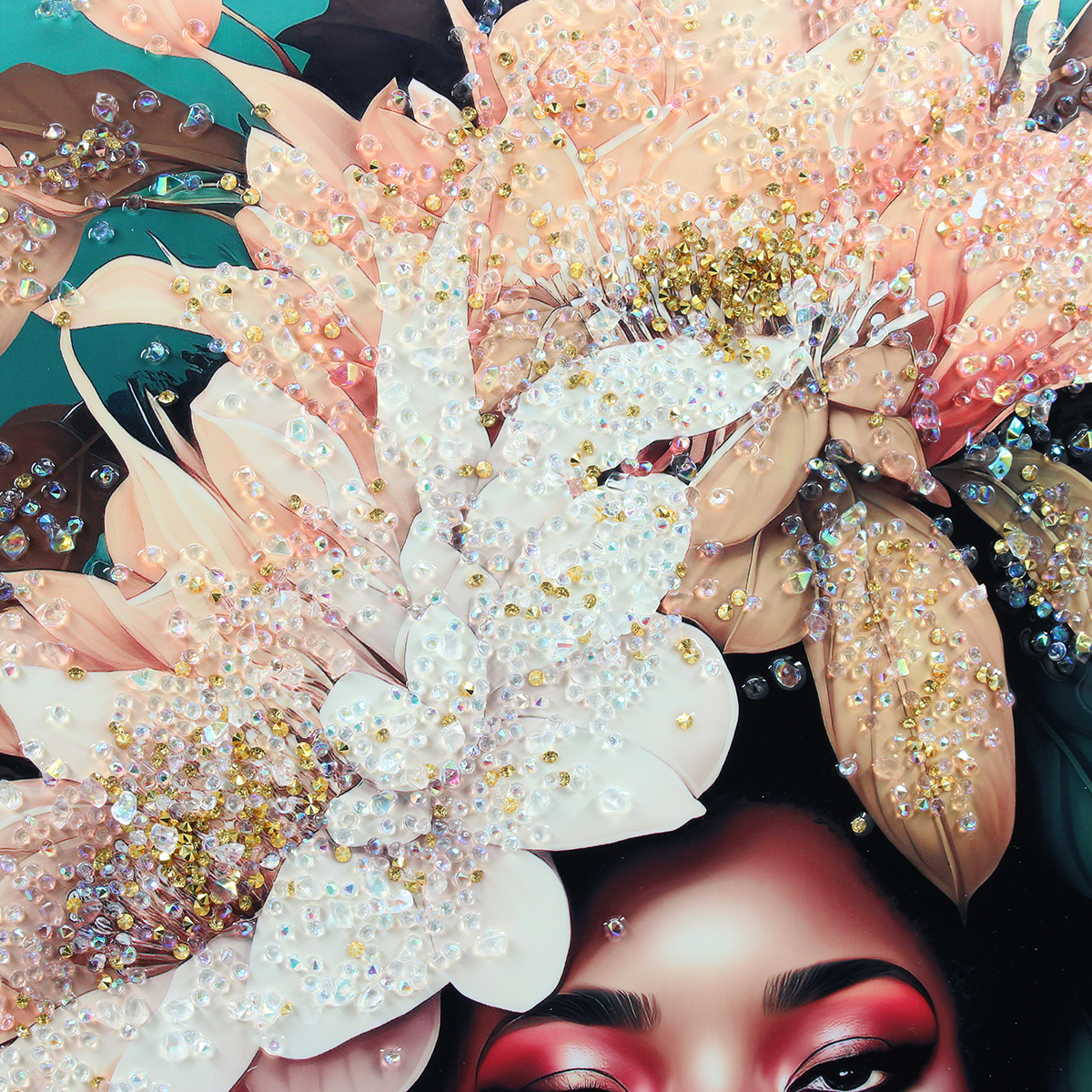 Πίνακας τοίχου 50Χ70 εκ. με κορνίζα και ανάγλυφα strass Αυτός ο πίνακας τοίχου διαστάσεων 50Χ70 εκ. με κορνίζα και ανάγλυφα strass προσφέρει πολυτελή εμφάνιση και εντυπωσιακή λάμψη στον χώρο.