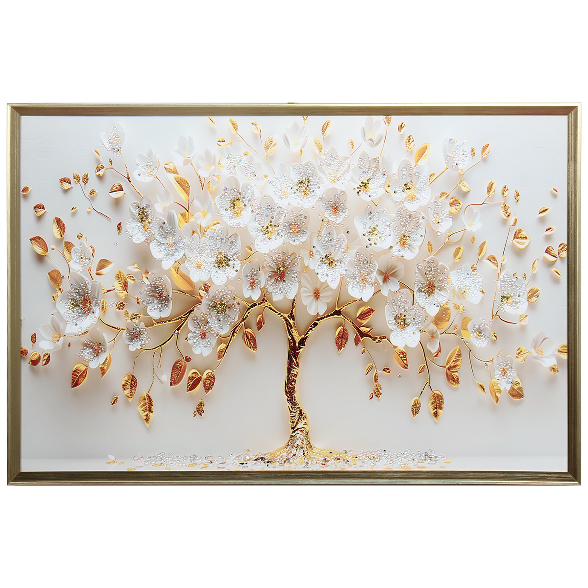 Πίνακας τοίχου 90Χ60 εκ. με κορνίζα και ανάγλυφα strass Αυτός ο εντυπωσιακός πίνακας τοίχου θα δώσει μια λαμπερή νότα στον χώρο σας. Είναι το ιδανικό διακοσμητικό για το σαλόνι, το υπνοδωμάτιο ή άλλον χώρο του σπιτιού σας. Το ανάγλυφο σχέδιο με τα strass προσθέτει λάμψη και φωτεινότητα, δημιουργώντας ένα εντυπωσιακό οπτικό αποτέλεσμα που θα προσελκύσει τα βλέμματα.