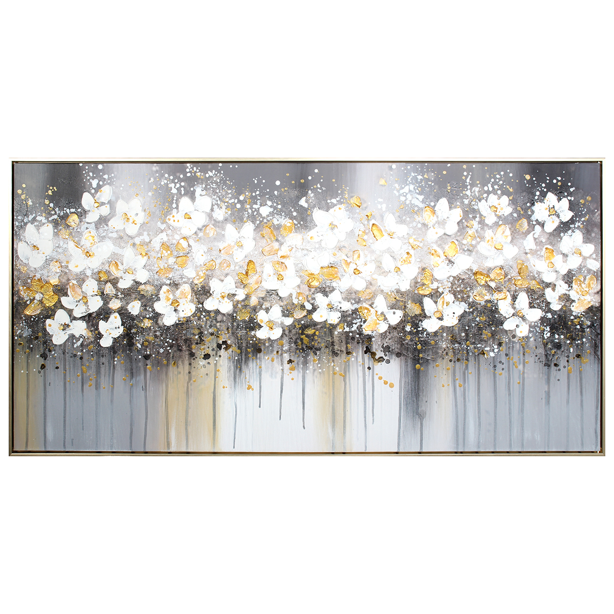 Πίνακας τοίχου καμβά χειροποίητος με ελαιογραφία 120Χ60 εκ. ανάγλυφος με χρυσή κορνίζα - KESKOR 82575