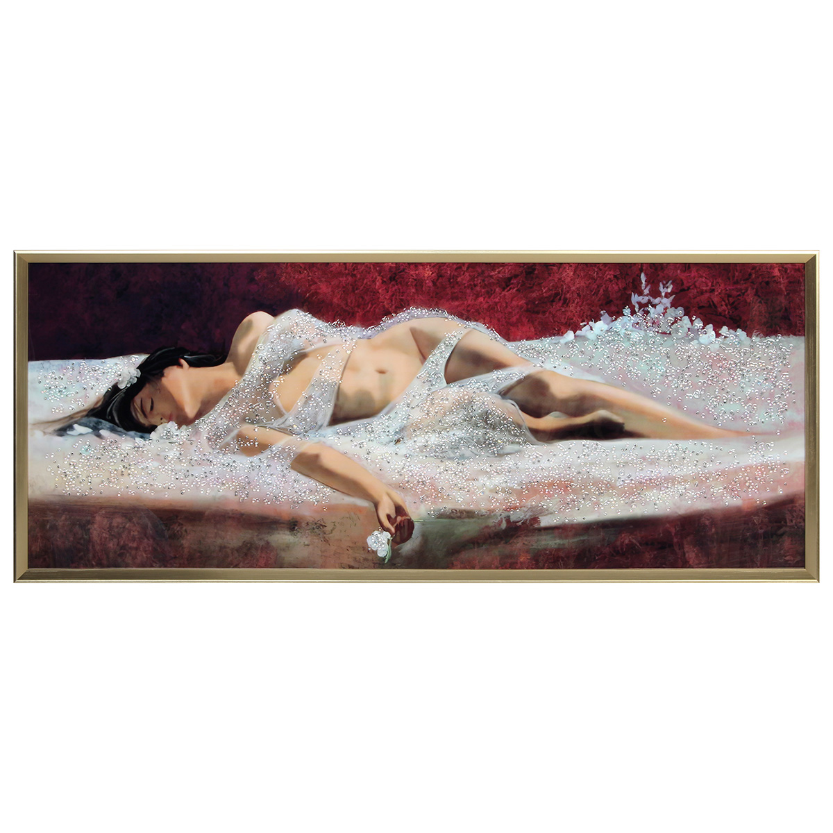 Πίνακας τοίχου ξύλινος 120Χ50 εκ. με κορνίζα και ανάγλυφα strass - KESKOR 212050-4
