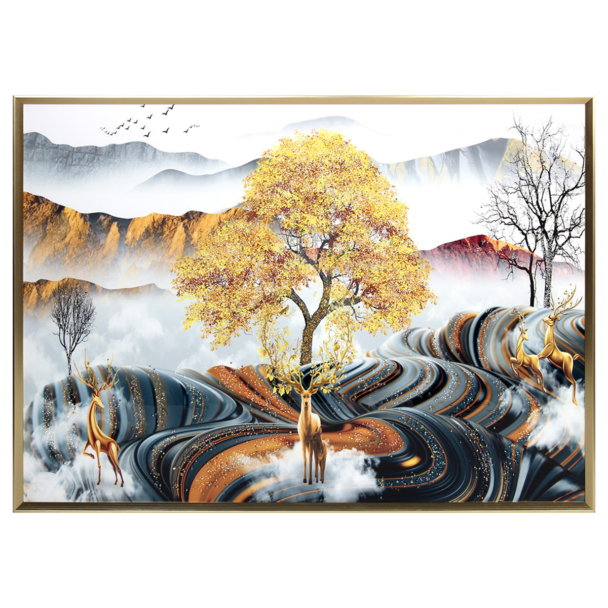 Πίνακας τοίχου ξύλινος 120Χ90 εκ. με κορνίζα και ανάγλυφα strass Αυτός ο εντυπωσιακός ξύλινος πίνακας τοίχου αναβαθμίζει τον χώρο σας με τον μοναδικό σχεδιασμό του. Με εντυπωσιακές διαστάσεις 120Χ90 εκατοστά, αυτός ο πίνακας θα κλέψει την παράσταση στον τοίχο σας.
