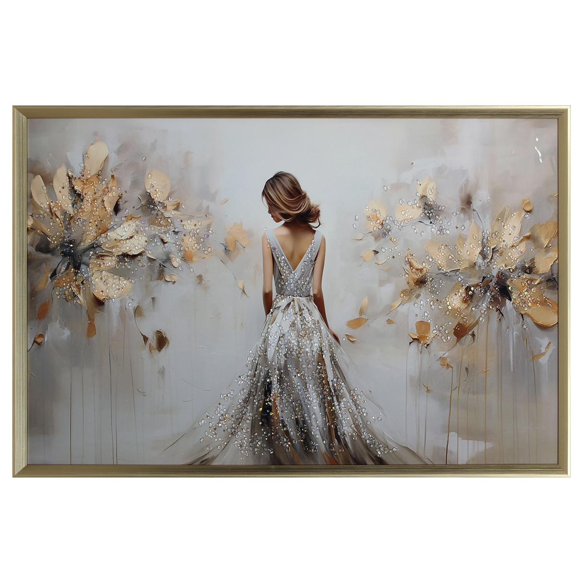 Πίνακας τοίχου ξύλινος 90Χ60 εκ. με κορνίζα και ανάγλυφα strass - KESKOR 29060-11