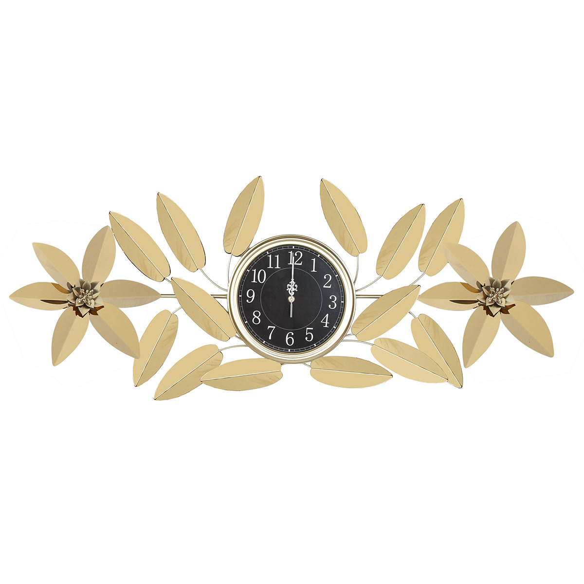Ρολόι τοίχου μεταλλικό 115Χ43 εκ. Χρυσό με φύλλα - KESKOR 94301