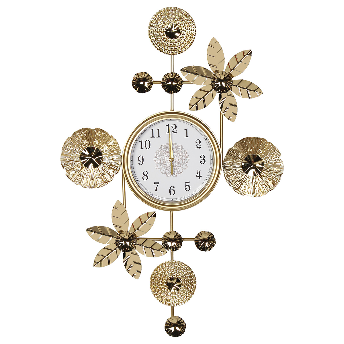 Ρολόι τοίχου μεταλλικό 88Χ5Χ58 εκ. Χρυσό με φύλλα και λουλούδια - KESKOR 94303