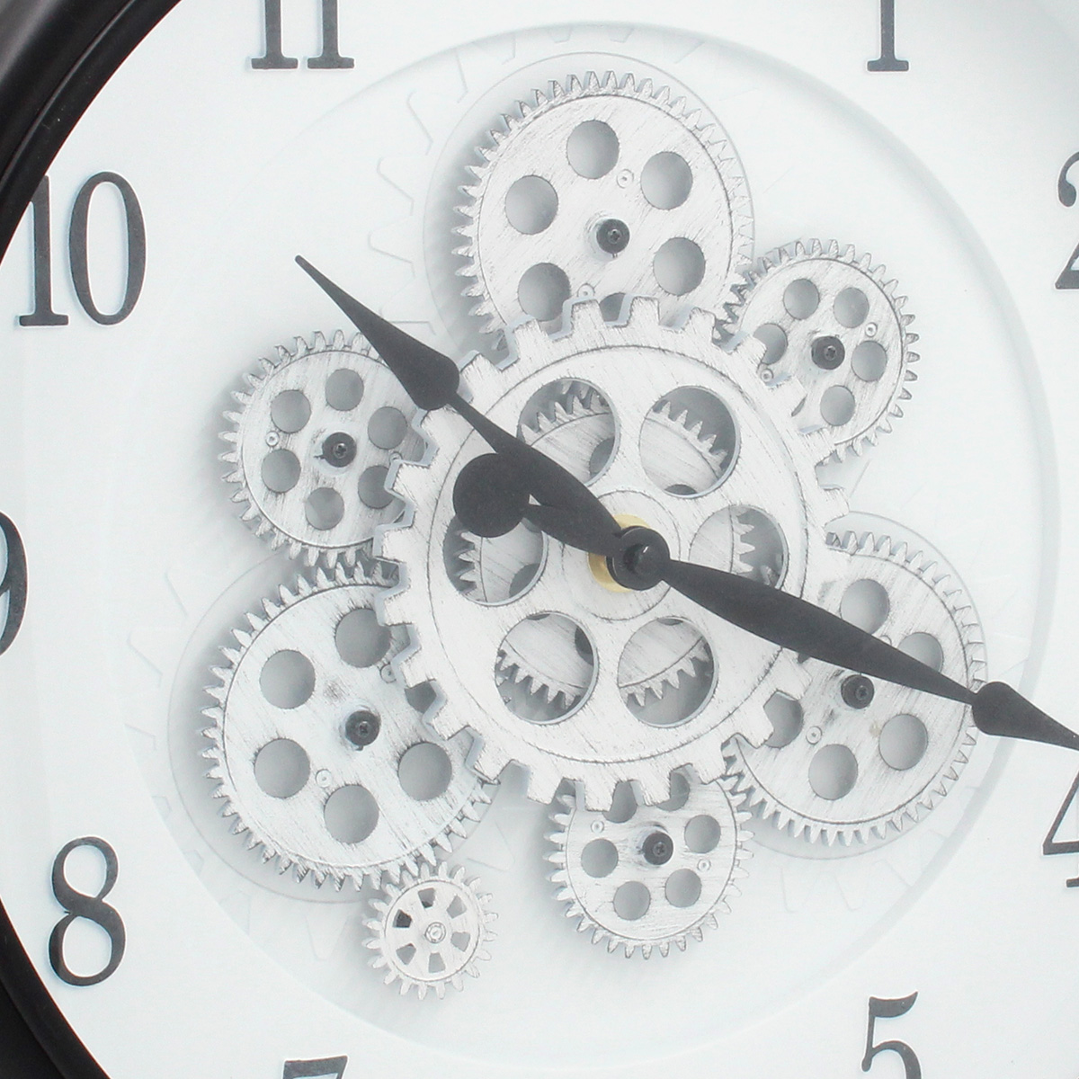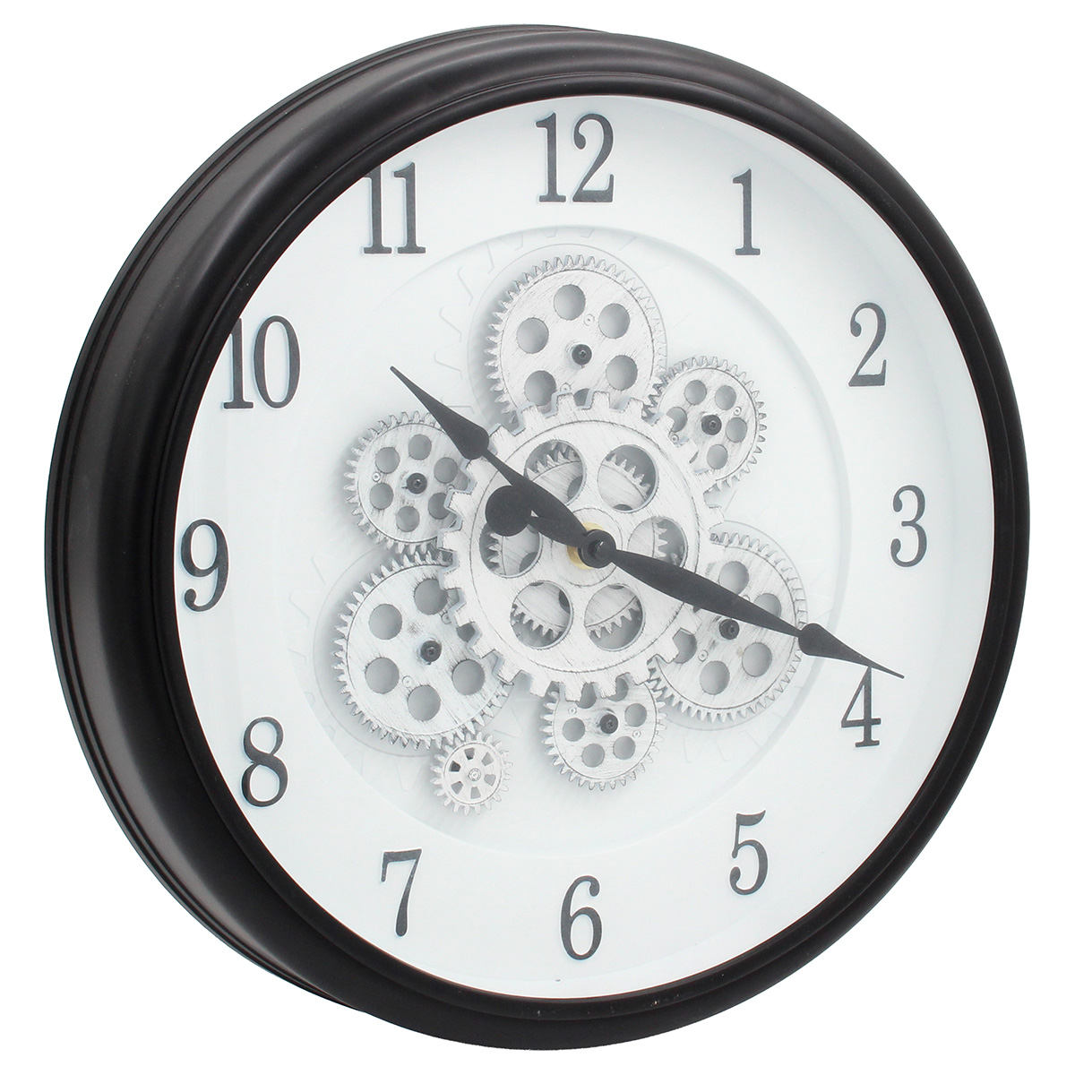 Ρολόι τοίχου πλαστικό Φ40Χ7 εκ. Μαύρο Λευκό με μηχανισμό και κίνηση γραναζιών Αυτό το ρολόι τοίχου μαύρο-λευκό με κίνηση γραναζιών δίνει βιομηχανικό χαρακτήρα. Ιδανικό για σύγχρονους ή loft χώρους.