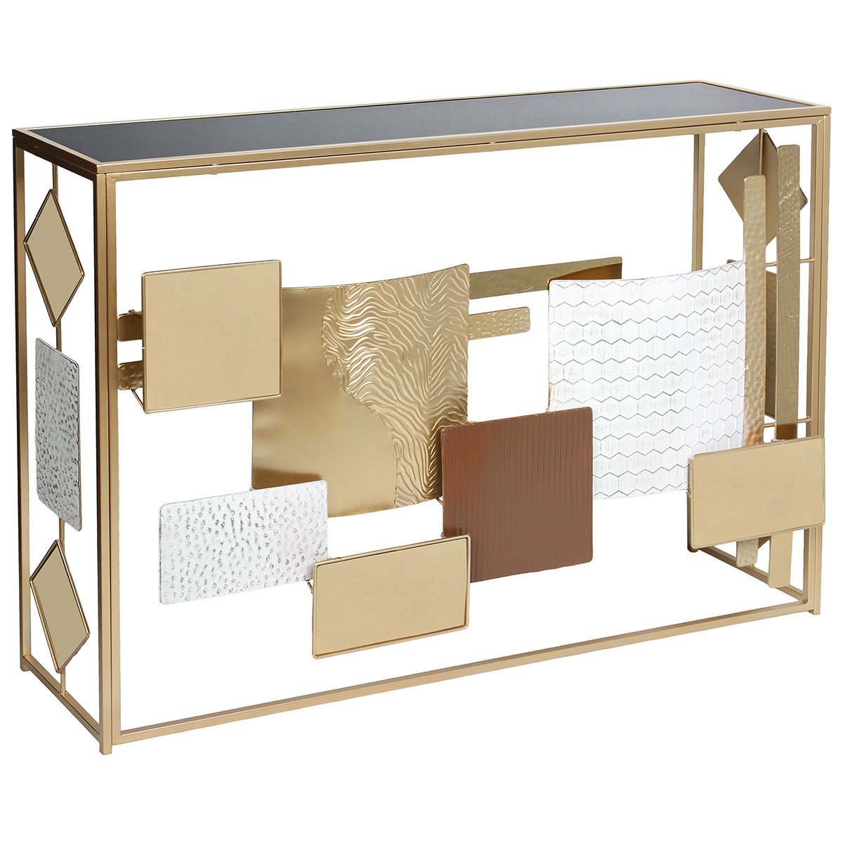 Κονσόλα μεταλλική 120Χ34Χ85 εκ. Χρυσή με Μαύρη γυάλινη επιφάνεια - KESKOR 46016