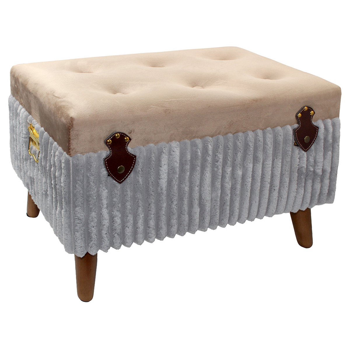 Μπαούλο - Σκαμπό ξύλινο 60Χ35Χ40 εκ. Βελουτέ - Γούνα Γκρι-Καφέ - KESKOR 52204-2