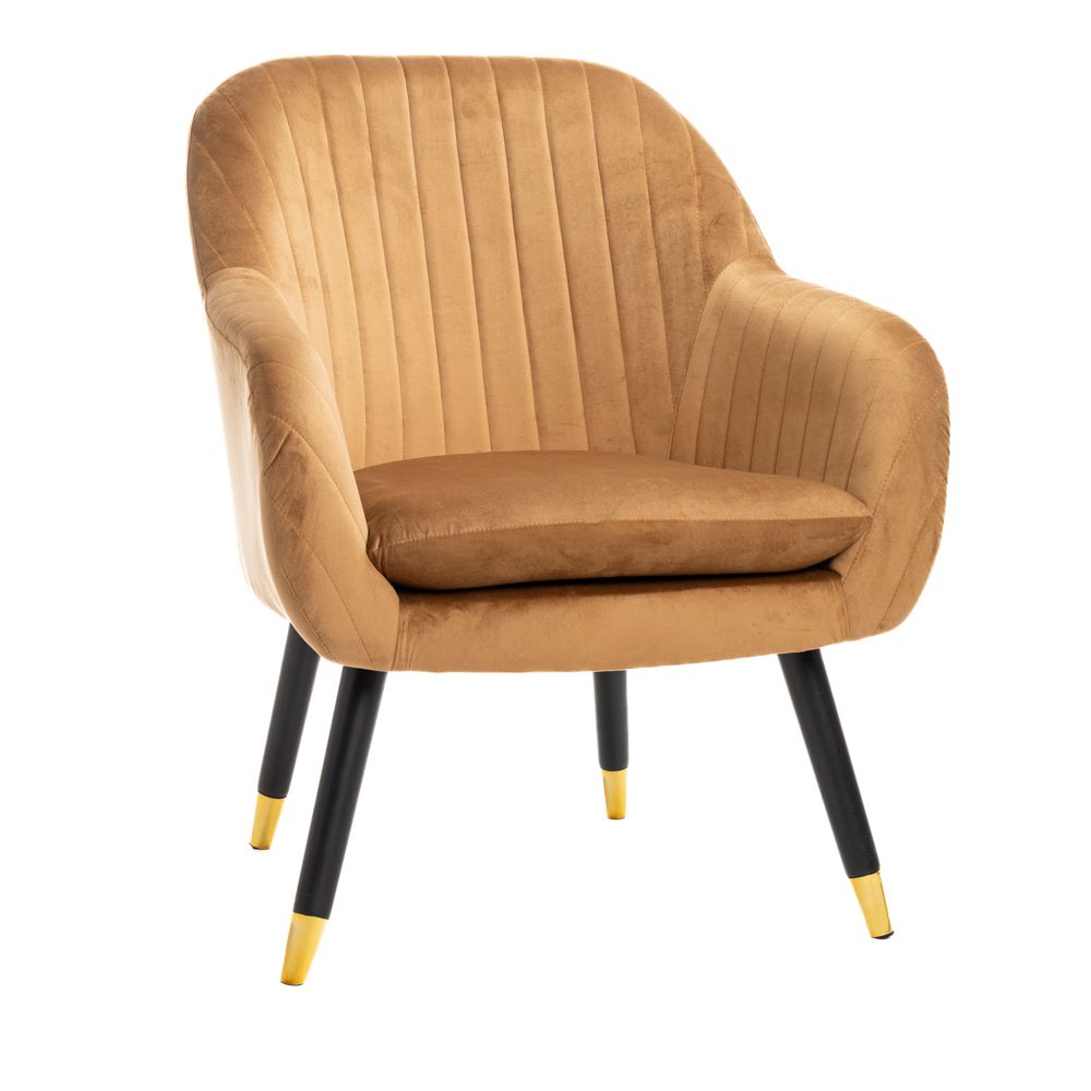 Πολυθρόνα καφέ βελούδινη 65χ73 χ83εκ.υψος πλάτης με μαύρα ξύλινα πόδια.