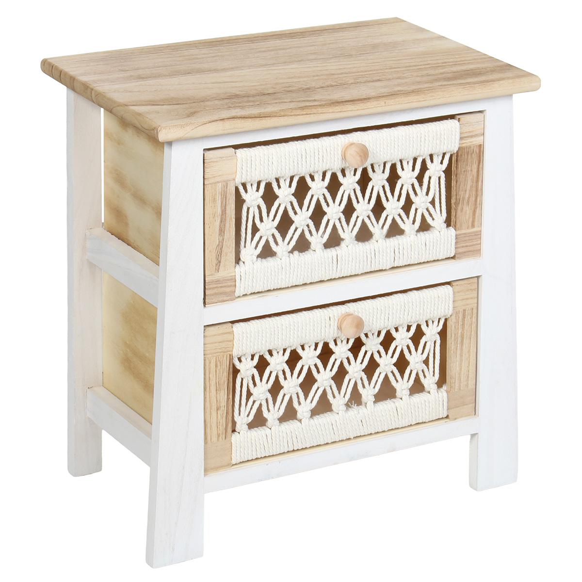 Συρταριέρα με 2 συρτάρια ξύλινη με σχοινί 40Χ27Χ43 εκ. Λευκή - KESKOR 415003