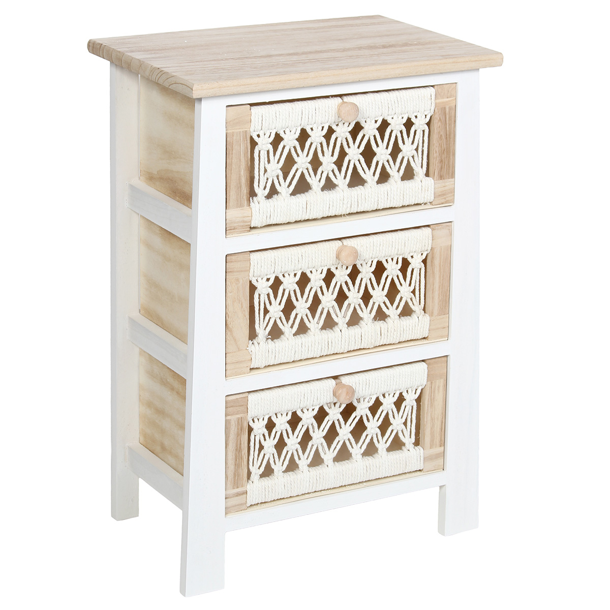 Συρταριέρα με 3 συρτάρια ξύλινη με σχοινί 40Χ27Χ60 εκ. Λευκή - KESKOR 415004