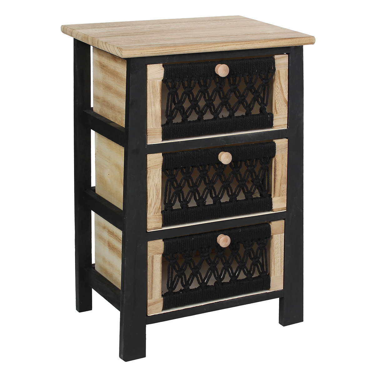 Συρταριέρα με 3 συρτάρια ξύλινη με σχοινί 40Χ27Χ60 εκ. Μαύρη - KESKOR 415001