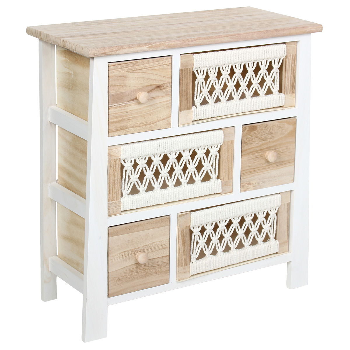 Συρταριέρα με 6 συρτάρια ξύλινη με σχοινί 55,5Χ27Χ60 εκ. Λευκή - KESKOR 415006