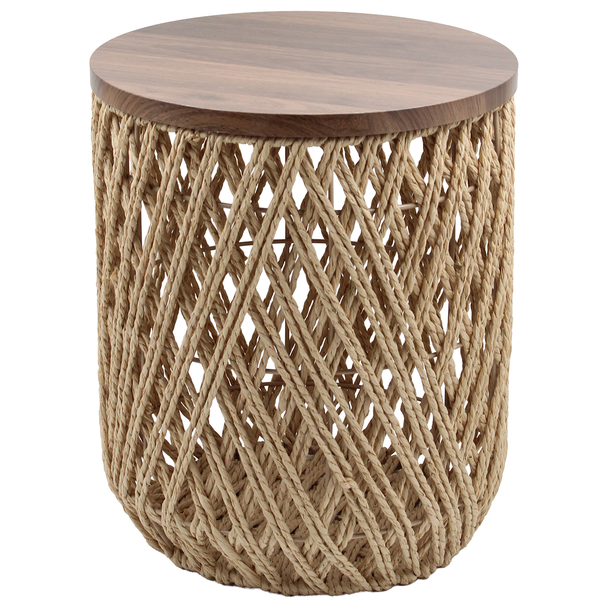 Τραπέζι σαλονιού με πλεκτό σχοινί Φ30Χ36 εκ. Boho και ξύλινη επιφάνεια - KESKOR 30701-3