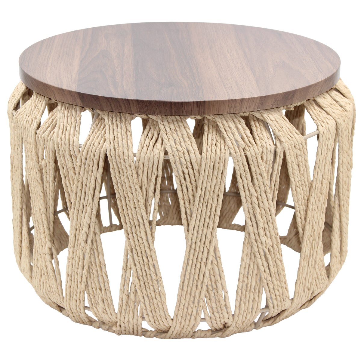 Τραπέζι σαλονιού με πλεκτό σχοινί Φ40Χ28 εκ. Boho και ξύλινη επιφάνεια - KESKOR 30703-3