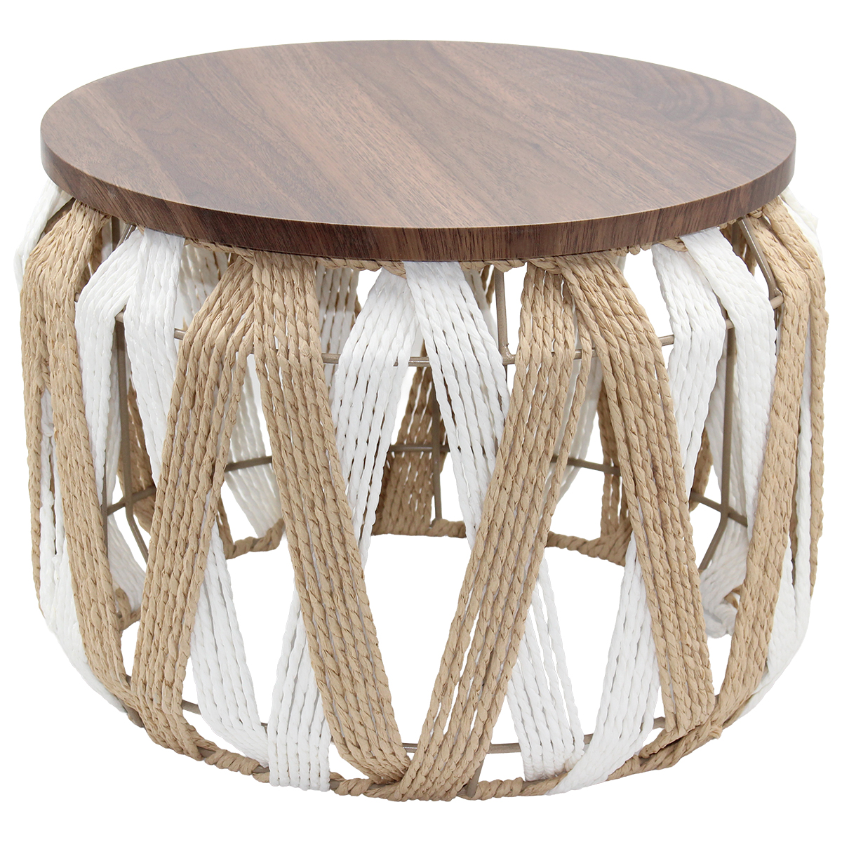 Τραπέζι σαλονιού με πλεκτό σχοινί Φ40Χ28 εκ. Boho και ξύλινη επιφάνεια Αυτό το τραπέζι σαλονιού με πλεκτό σχοινί έχει λιτή και φυσική αισθητική, με boho σχεδιασμό. Η ξύλινη επιφάνεια προσθέτει πρακτικότητα και στιλ. Κατάλληλο για όλους τους χώρους.