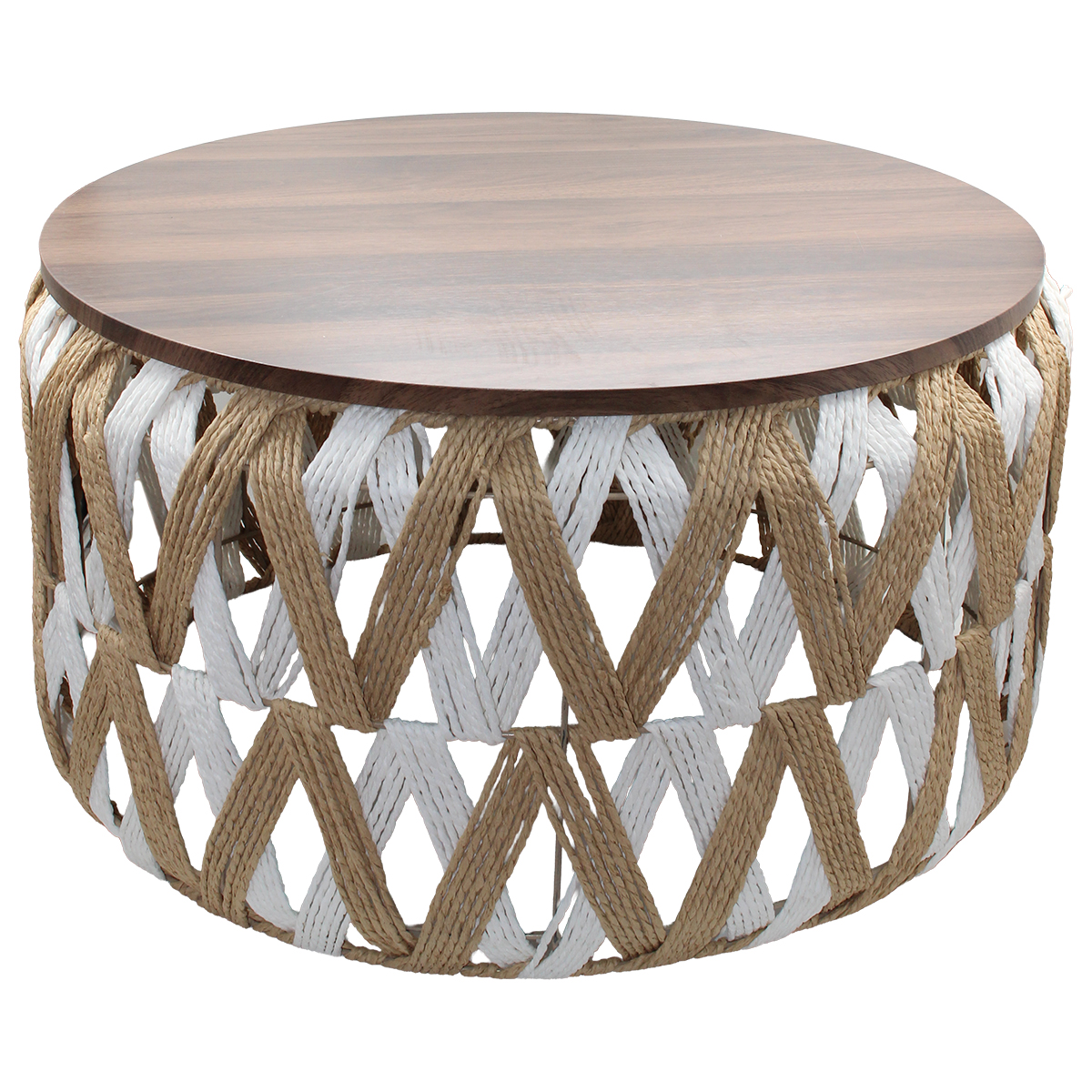 Τραπέζι σαλονιού με πλεκτό σχοινί Φ68Χ37 εκ. Boho και ξύλινη επιφάνεια Αυτό το τραπέζι σαλονιού με πλεκτό σχοινί έχει λιτή και φυσική αισθητική, με boho σχεδιασμό. Η ξύλινη επιφάνεια προσθέτει πρακτικότητα και στιλ. Κατάλληλο για όλους τους χώρους.