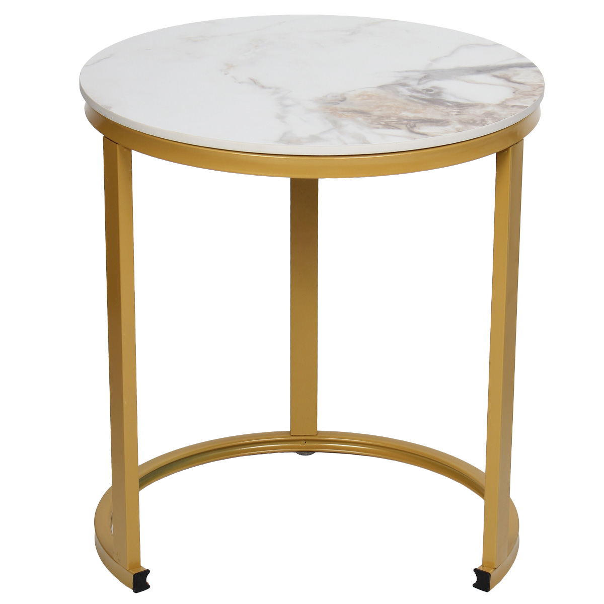 Τραπέζι σαλονιού μεταλλικό Φ45Χ49 εκ. Χρυσό με Κεραμική επιφάνεια - KESKOR 509264-1
