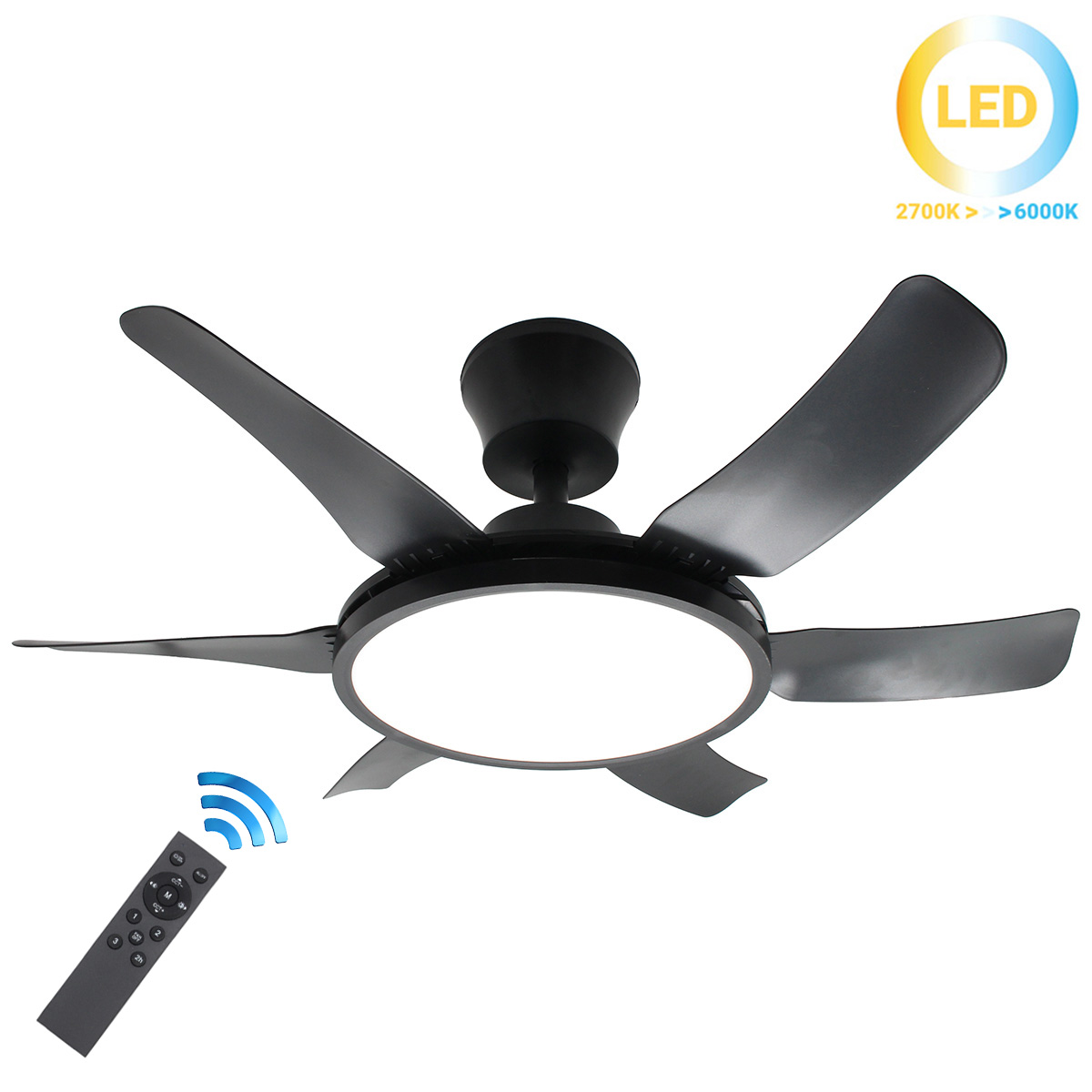 Ανεμιστήρας οροφής με 6 πτερύγια Φ76Χ27 εκ. 60 Watt με φωτισμό LED και controller Μαύρο - KESKOR 653370