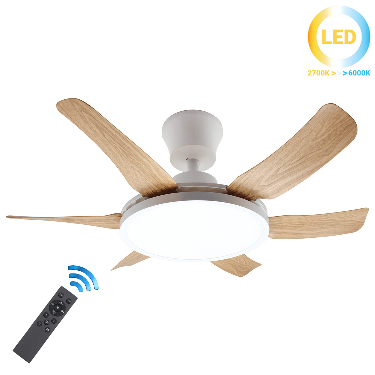 Ανεμιστήρας οροφής με 6 πτερύγια σε χρώμα Ξύλου Φ76Χ27 εκ. 60 Watt με φωτισμό LED και controller Λευκό - KESKOR 653371