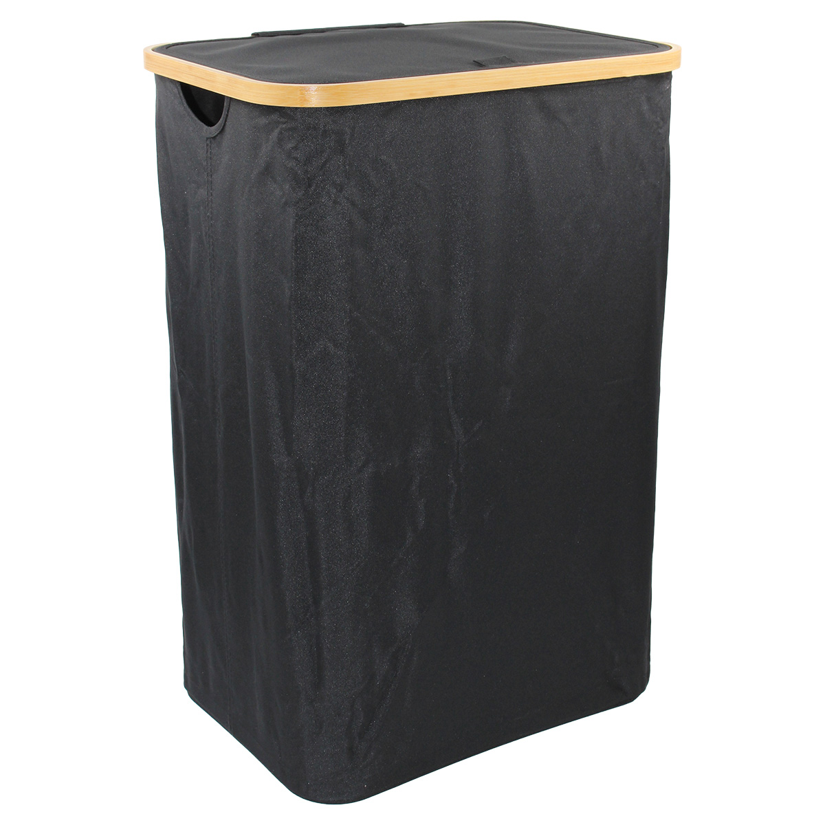 Καλάθι απλύτων 40Χ30Χ60 εκ. από ύφασμα Μαύρο και ξύλινο σκελετό Bamboo Αυτό το καλάθι απλύτων, με διαστάσεις 40Χ30Χ60 εκ., διαθέτει μαύρο ύφασμα και ξύλινο σκελετό bamboo για μοντέρνα εμφάνιση και ανθεκτικότητα.