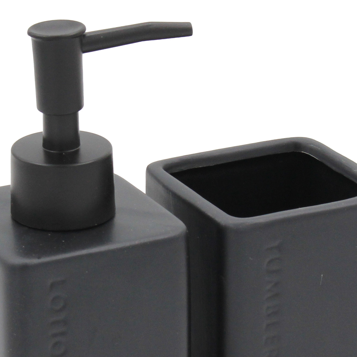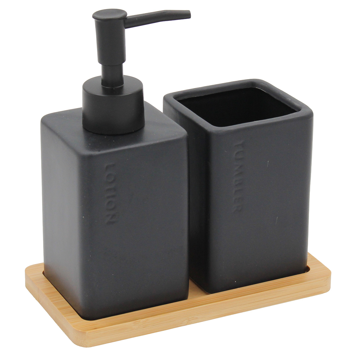 Σετ μπάνιου κεραμικά 2 τεμ. Μαύρο με ξύλινη βάση Bamboo Το σετ περιλαμβάνει: