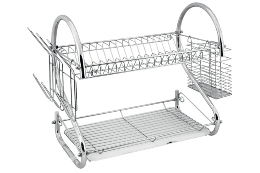 Πιατοθήκη μεταλλική χρωμίου διώροφη με πλαστικό δίσκο. Διαθέτει ειδική θέση για ποτήρια και μαχαιροπίρουνα. Διαστ. (χωρίς τις ειδικές θέσεις): 38,5Χ26,5Χ37,5 εκ.