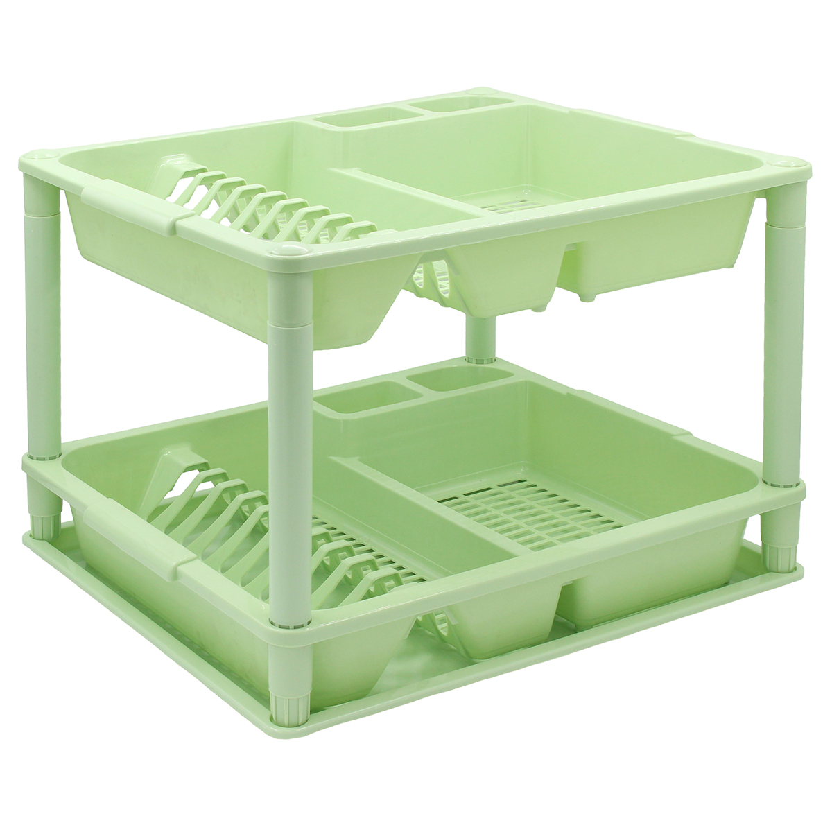 Πιατοθήκη πλαστική διώροφη 45Χ37Χ33 εκ. Πράσινη με δίσκο - KESKOR 42670-5
